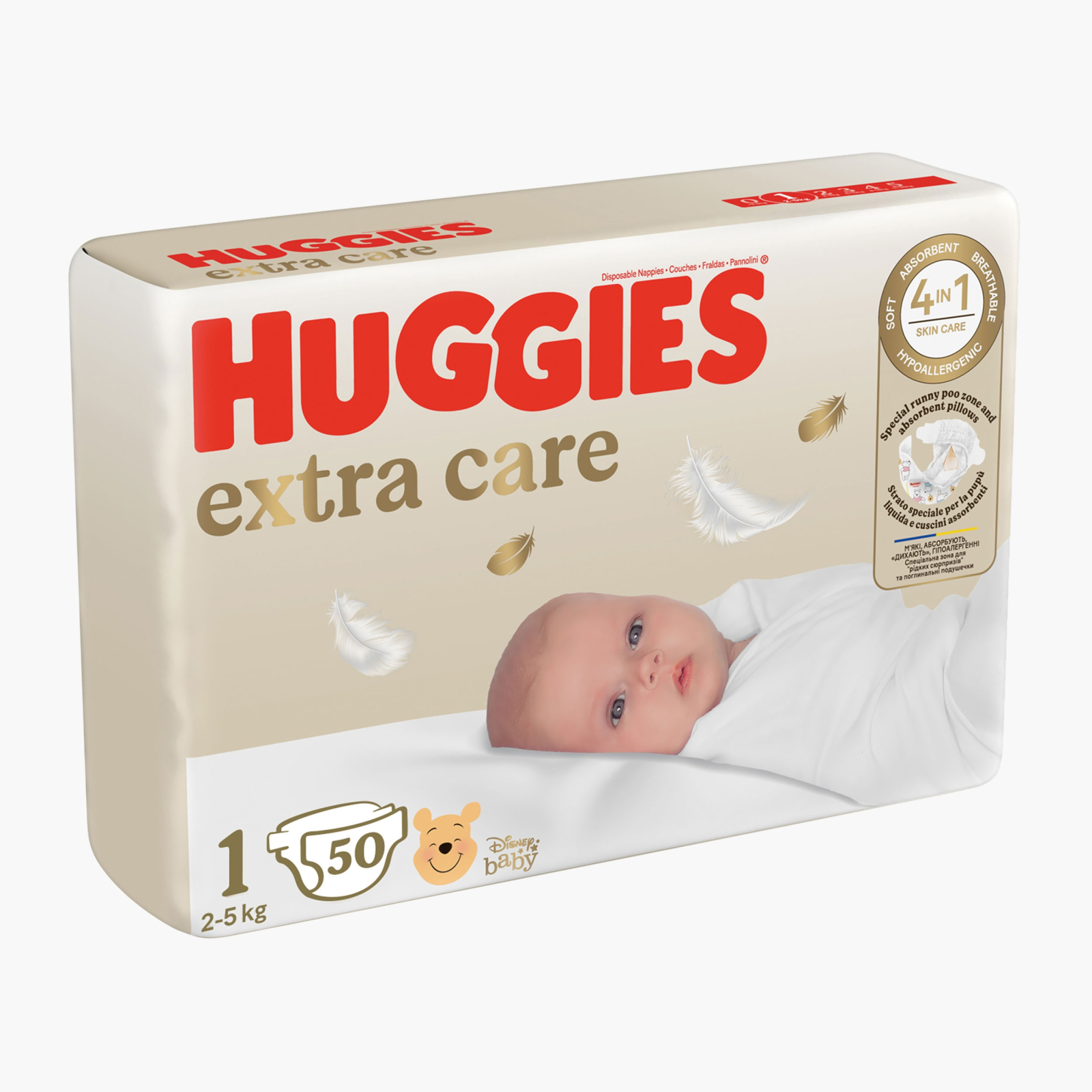 Scutecele Huggies® Extra Care sunt hipoalergenice, aprobate de dermatologi şi sunt potrivite pentru pielea predispusă la iritații.